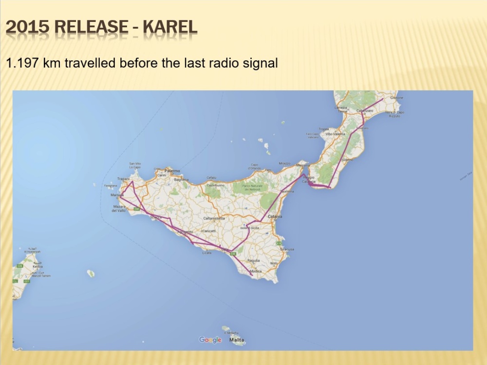 Z pěti sledovaných supů vypuštěných v roce 2015 jen dva úspěšně dokončili migraci. Prvním z nich byla Sara, vylíhlá v Toskánsku, která se v roce 2019 poprvé vrátila zpět do Itálie. V mezičase se pohybovala na malém území v Nigeru a chovala se prakticky jako rezidentní pták, což je pro mladé supy zcela přirozené. Agata, vylíhlá ve Zlíně, se ztratila po pouhých 100 kilometrech, když opustila sicilské pobřeží. Spadla do moře a panuje podezření, že to bylo následkem otravy, protože se předtím pohybovala na skládce. Aneta, vylíhlá v Praze, měla už přelet moře téměř za sebou, když se relativně blízko afrického pobřeží stočila na východ a těsně u hranic Libye spadla do moře. V Libyi probíhají cílené odstřely ptáků a ochrana přírody je tam takřka nulová, teorií tedy je, že se Aneta stala obětí odstřelu. Pražský samec Karel skončil svůj let ještě na Sicílii; signál se ztratil a vysílačka se nikdy nenašla, takže se neví, co se s ním stalo. Mohl být odchycen a vysílačka ukradena (dají se totiž zpeněžit a v některých zemích jsou navíc ptáci s vysílačkami považováni za supí špiony), ale jsou to jen dohady. Toskánský Tobia se přes Maltu, kde způsobil mezi ornitology velké pozdvižení, dostal do Nigeru a v roce 2019 se poprvé vrátil do Itálie.