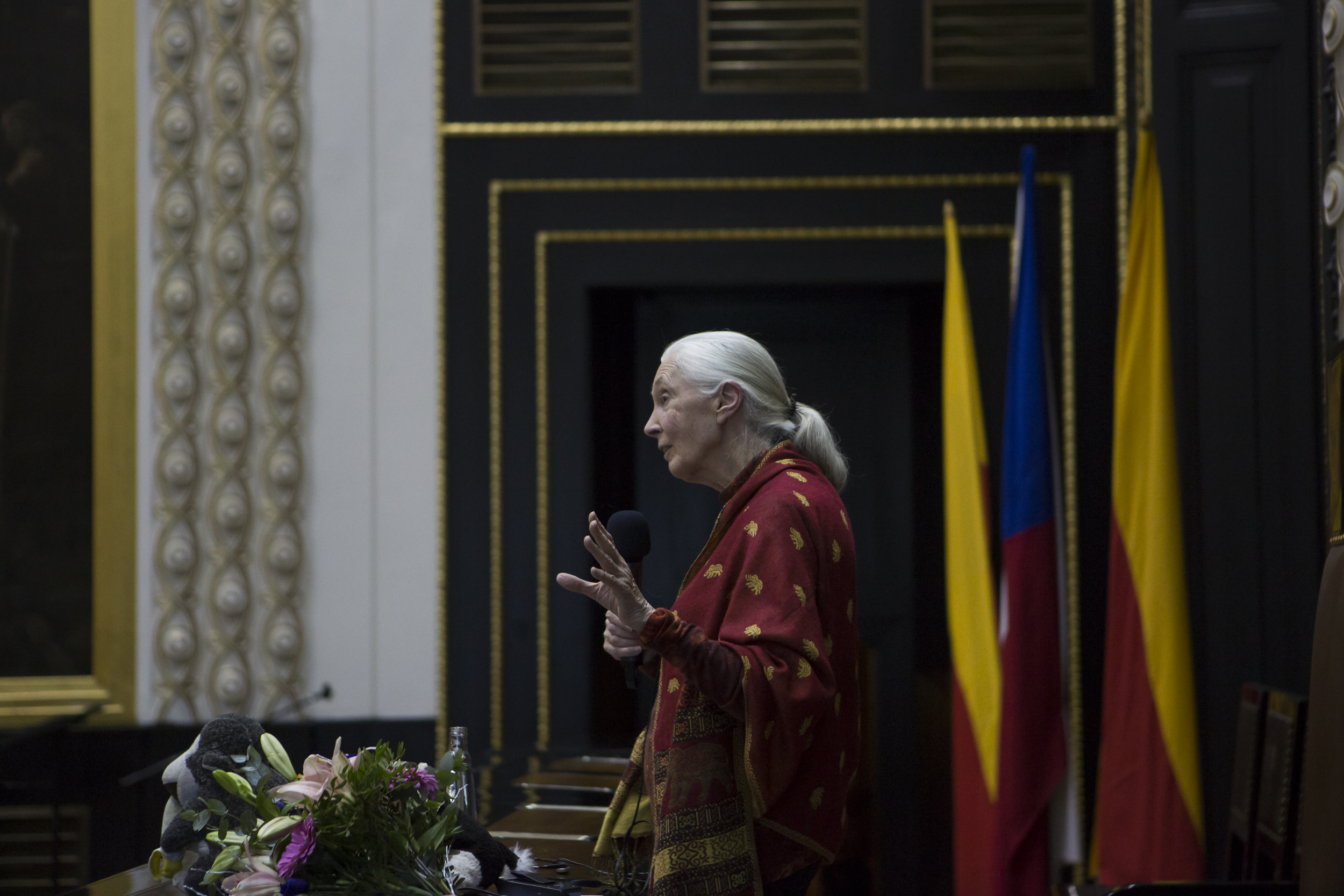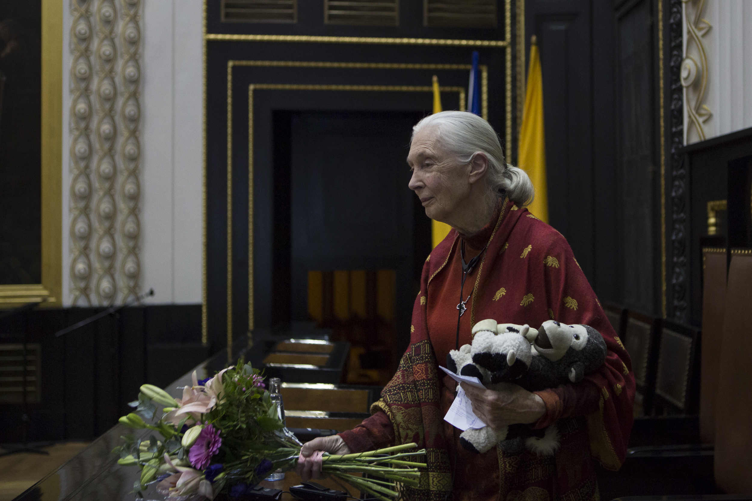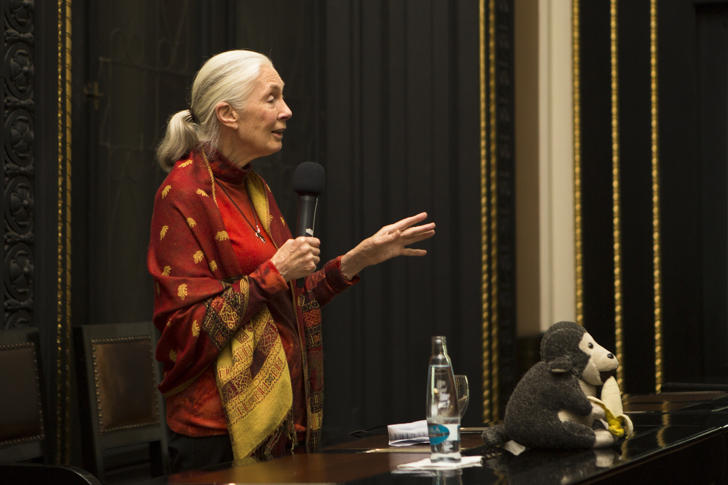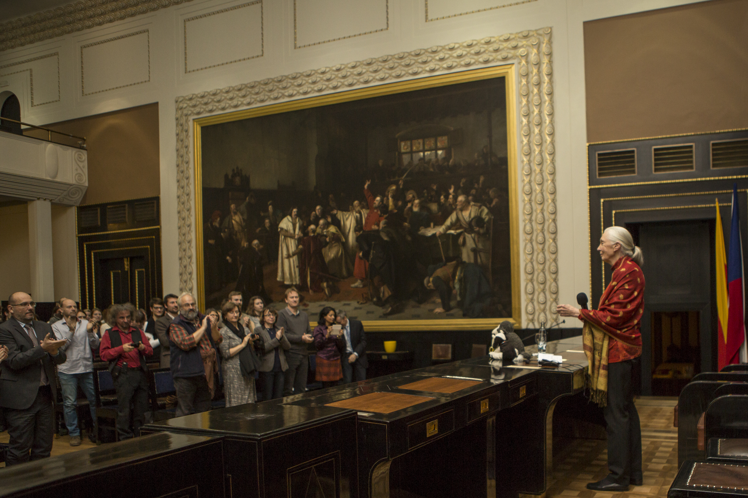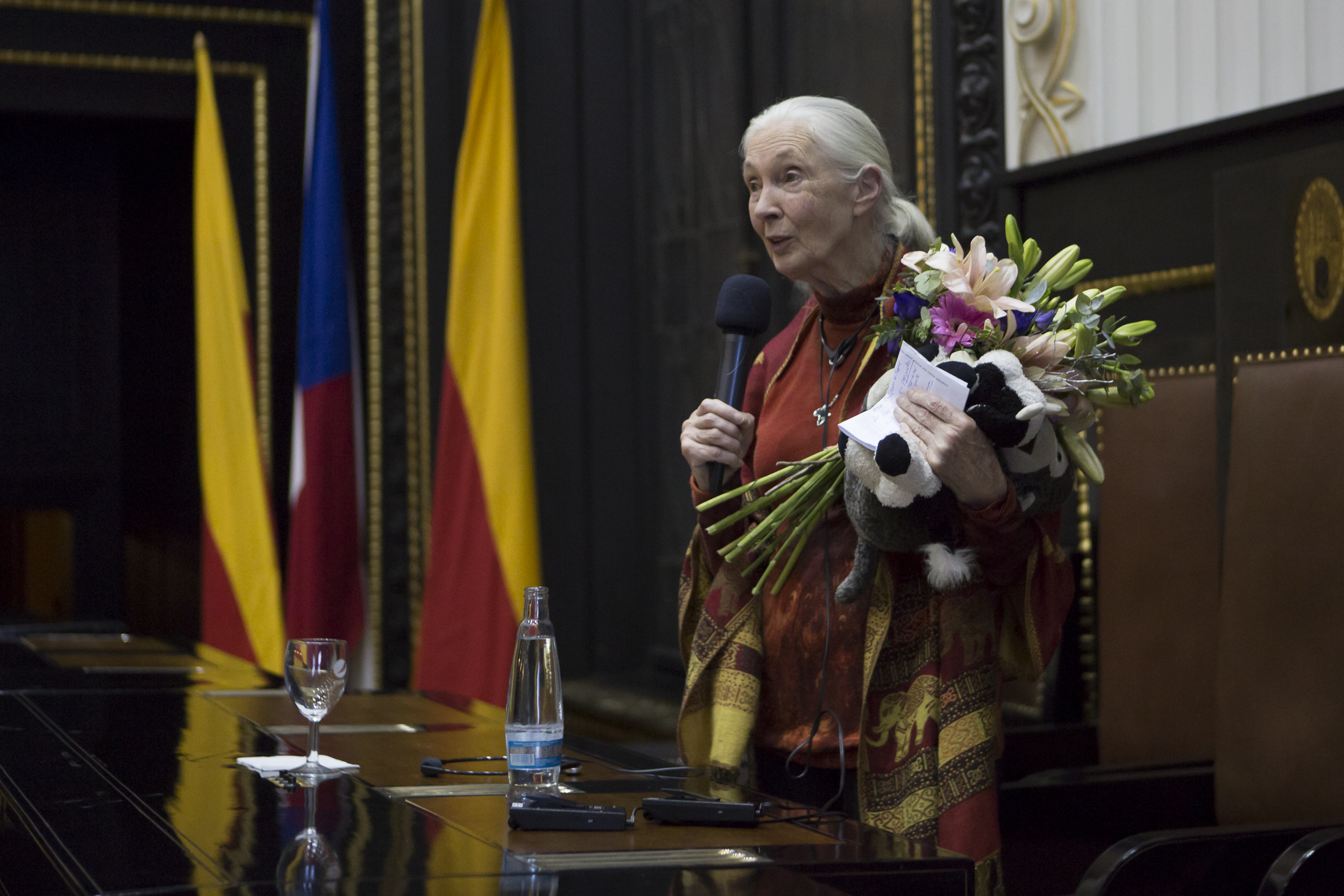 Na pondělí 12. prosince připravila Zoo Praha přednášku Jane Goodall v Brožíkově sále Staroměstské radnice. Účastníci přivítali vzácného hosta potleskem vstoje. Všichni se zaujetím a netajeným obdivem i dojetím naslouchali slovům této noblesní dámy. Po ukončení přednášky vyzvala Jane Goodall přítomné k besedě a zodpověděla všechny individuální dotazy, které jí posluchači položili. V závěru večera proběhla autogramiáda a na podpisy knih a fotografií této fascinující, vzácné osobnosti čekali snad všichni.