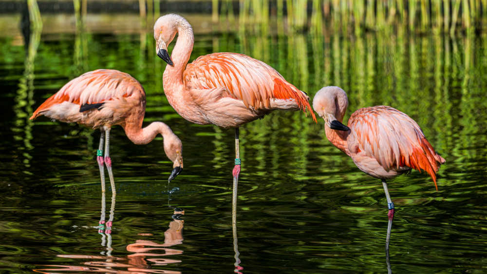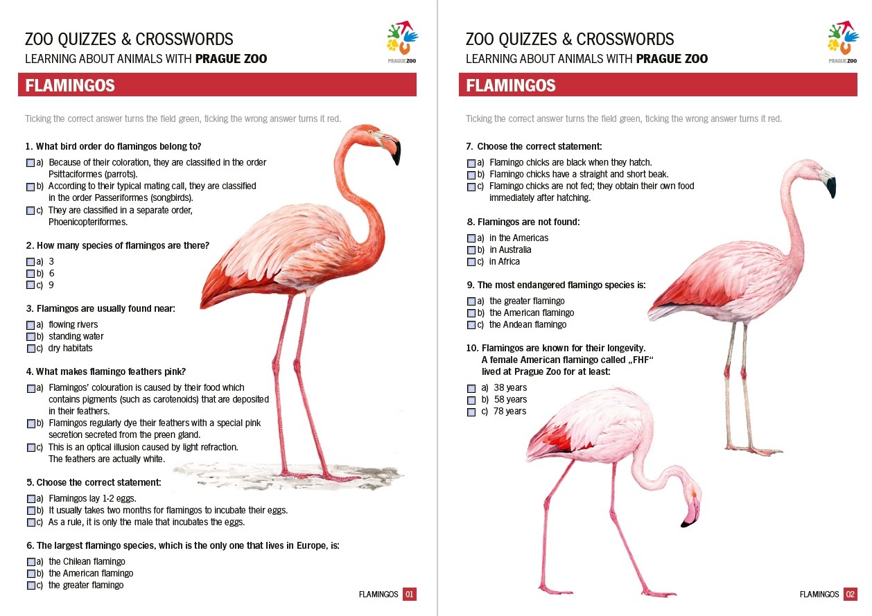 Thanks to their long legs, long neck and, in particular, their typical colouring, flamingos cannot be mistaken for any other bird. We keep three flamingo species in the zoo. You can see them in the zoo’s lower section. Can you tell which species is which?