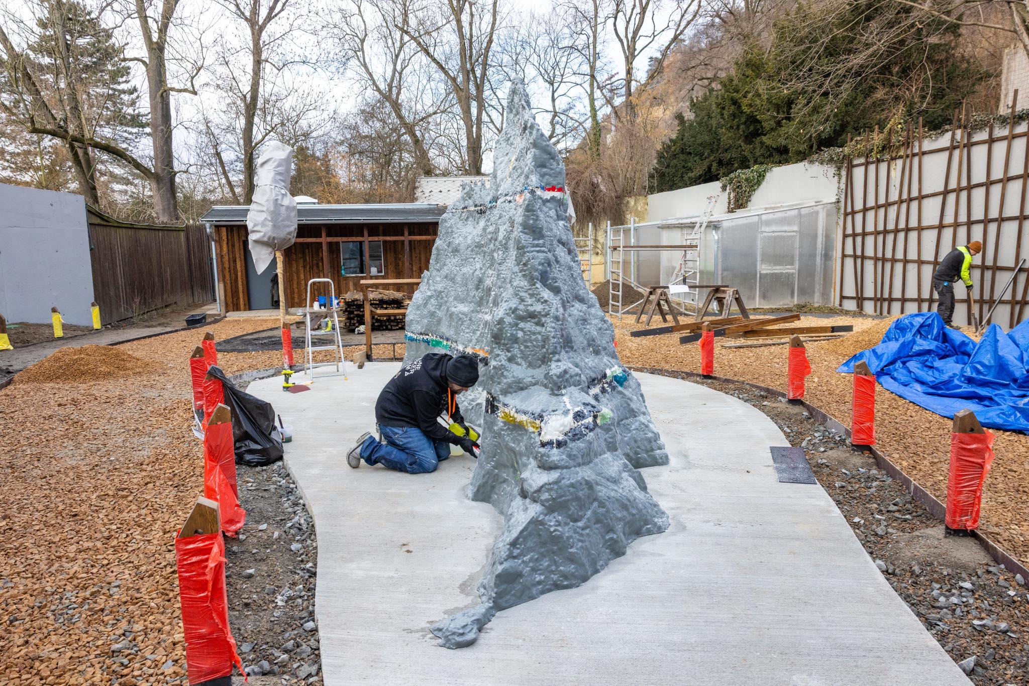 A larger part of the Ball's Pyramid exhibit is situated in the former male elephant enclosure, created by modifying and expanding the original tapir enclosure. When needed, it could be connected to the adjacent female enclosure through a gate, but it also allowed the male to be kept separate from the herd—just as in the wild, where adult male elephants mostly live solitary lives.