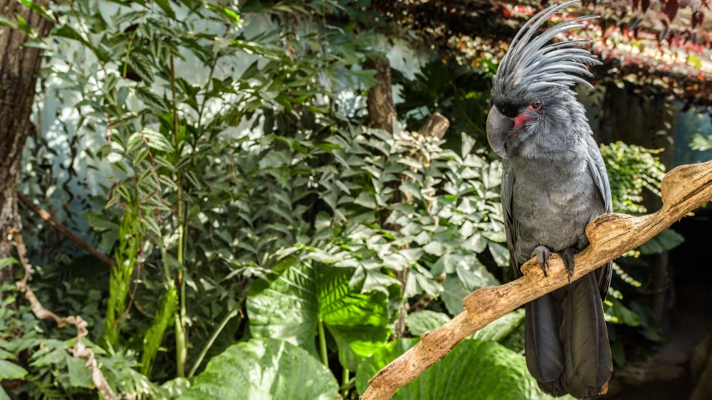 V expozici deštného nížinného lesa Nové Guineje se zabydlel největší kakadu světa. Jeho chocholka je jakýmsi barometrem nálady. V klidu je sklopená, ale při jakémkoliv hnutí emocí ji papoušek vztyčí, a své rozpoložení prozradí také rudnutím či blednutím holé kůže na tvářích. Foto: Petr Hamerník, Zoo Praha.