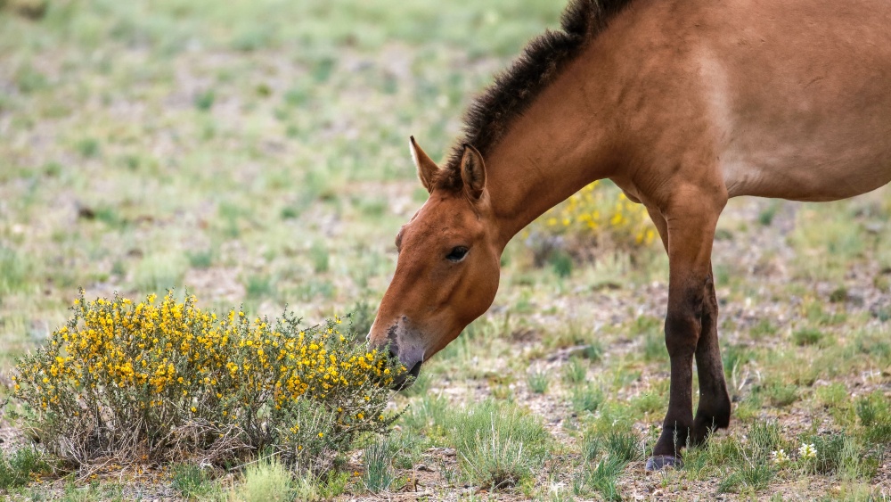 Zde se klisna pase v Mongolsku, ale stepní rostlinná společenstva by se měla vrátit i na Dívčí hrady. Foto: Miroslav Bobek, Zoo Praha