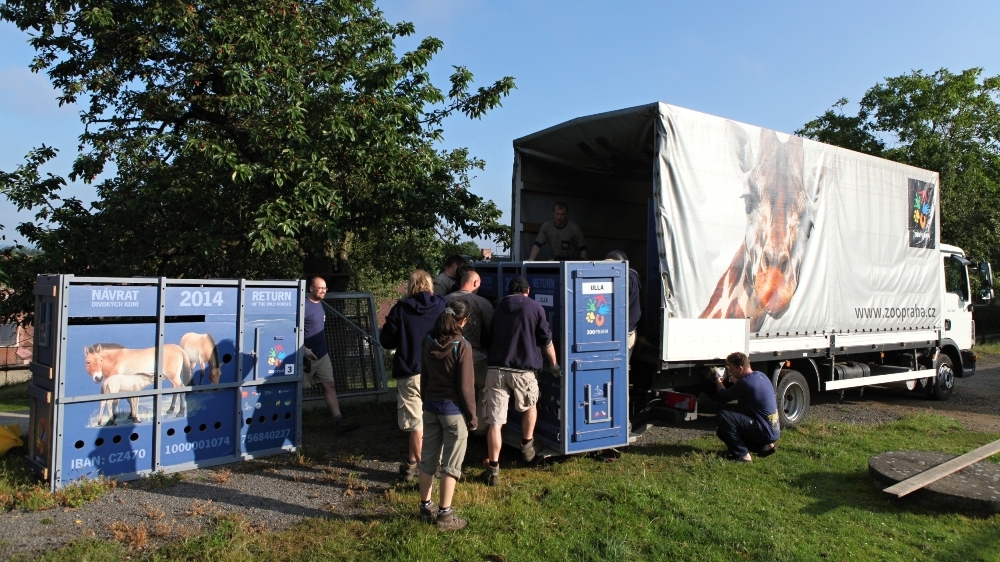 V aklimatizační stanici v Dolním Dobřejově byli koně nakládáni od brzkých ranních hodin. Foto: Miroslav Bobek, Zoo Praha.