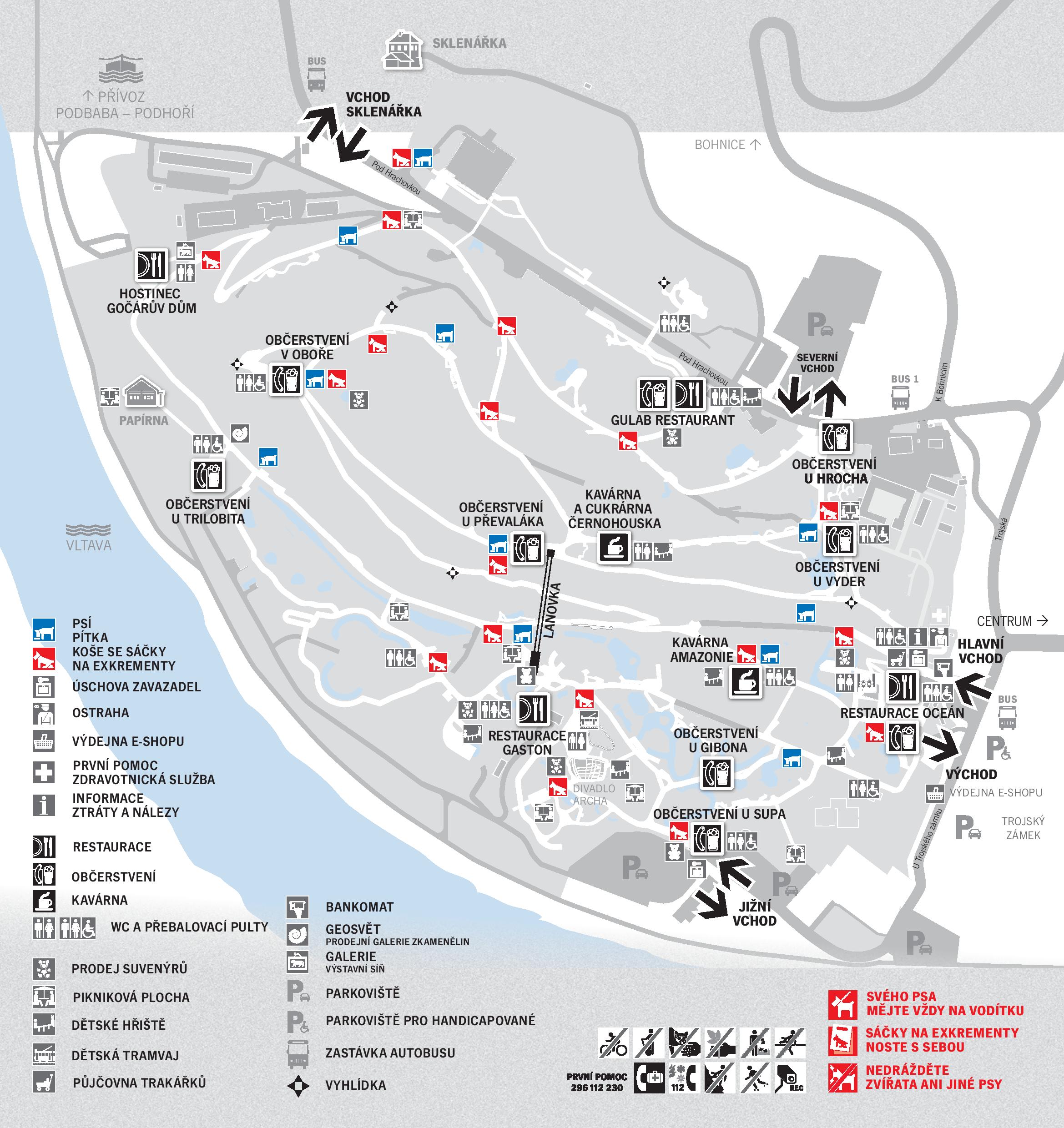 V areálu zoo jsou pro psy rozmístěna automatická pítka nebo misky na vodu (misky jsou k dispozici v období sezony) a odpadkové koše s papírovými sáčky na psí trus.
