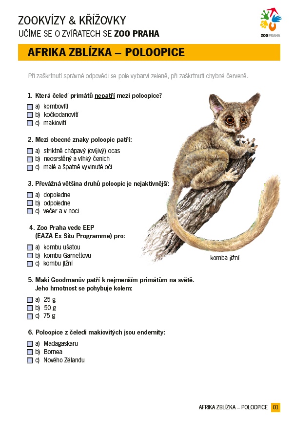 Oblíbené gorily, nejmohutnější ze všech lidoopů, zná asi každý návštěvník zoologické zahrady. Víte však, která z afrických opic je nejmenší? A znáte komby, malé noční primáty s výborným nočním viděním a vynikajícím sluchem? Vyplňte si náš interaktivní kvíz ZDE a podívejte se na naše vzdělávací videa: