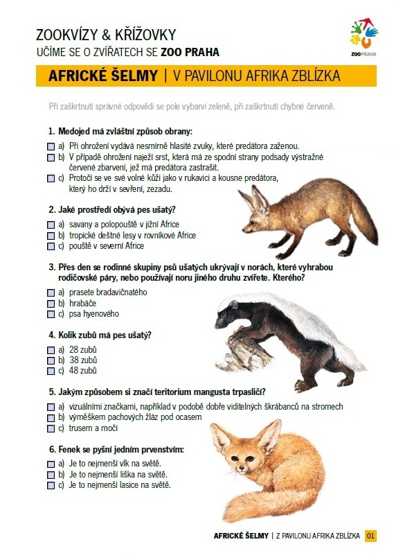 Neodmyslitelnou součástí africké fauny jsou samozřejmě i šelmy. Nejedná se však jen o známé lvy, gepardy či hyeny, ale také o řadu dalších menších druhů jako jsou mangusty, medojedi nebo fenci. Své znalosti o nich můžete otestovat v našem dalším interaktivním kvízu ZDE.