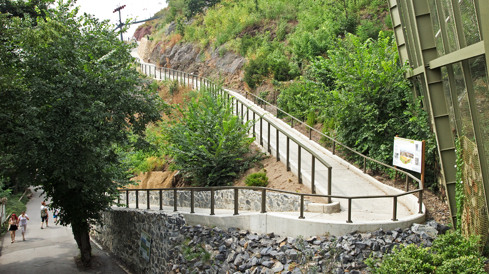 Cesta byla vybudována ve třicátých letech 20. století jako zářez do skalní stěny a vede od Velké voliéry k dnešnímu občerstvení V Oboře. Skalní masiv, kterým prochází, je biologicky i geologicky velmi cenný. Na jeho jižně exponovaných svazích má domov pestré společenstvo teplomilných druhů živočichů a rostlin, včetně některých velmi vzácných a chráněných. V průběhu času však oblast zarostla náletovými dřevinami, v jejichž stínu vzácné teplomilné druhy nenacházely vhodné podmínky k životu. Vlastní skála se navíc začala drolit a hrozily sesuvy skalních bloků. Proto jsme mezi lety 2011 a 2013 provedli rozsáhlou revitalizaci území s cílem obnovit jeho původní rozmanitost. Odstranili jsme při ní náletové dřeviny a skálu stabilizovali sítěmi. Zároveň jsme znovu zpřístupnili cestu, která byla od 70. let kvůli riziku sesuvů zavřená, a na vybraných místech ji doplnili informačními tabulemi přibližujícími jedinečnou přírodu skalní stepi a geologické zajímavosti skalního masivu.
